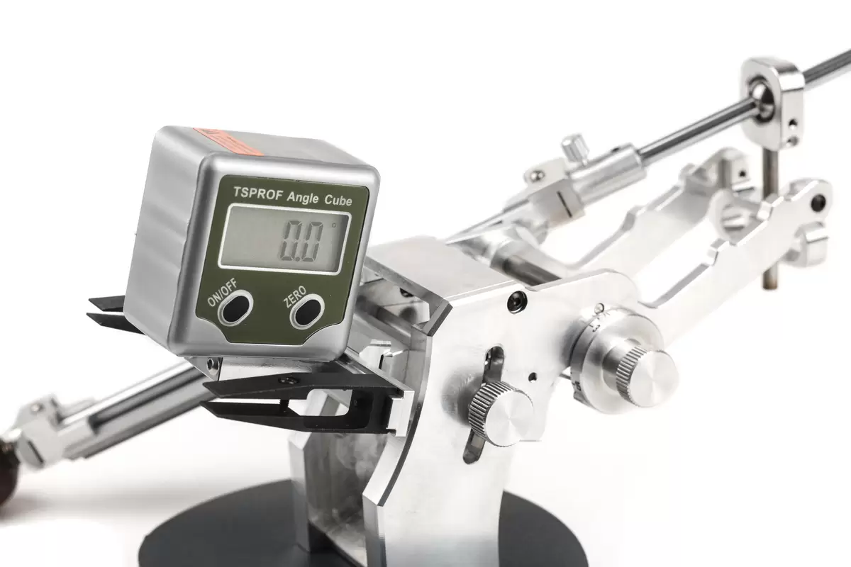 3. Place the abrasive holder on the knife and zero the angle gauge on the holder.