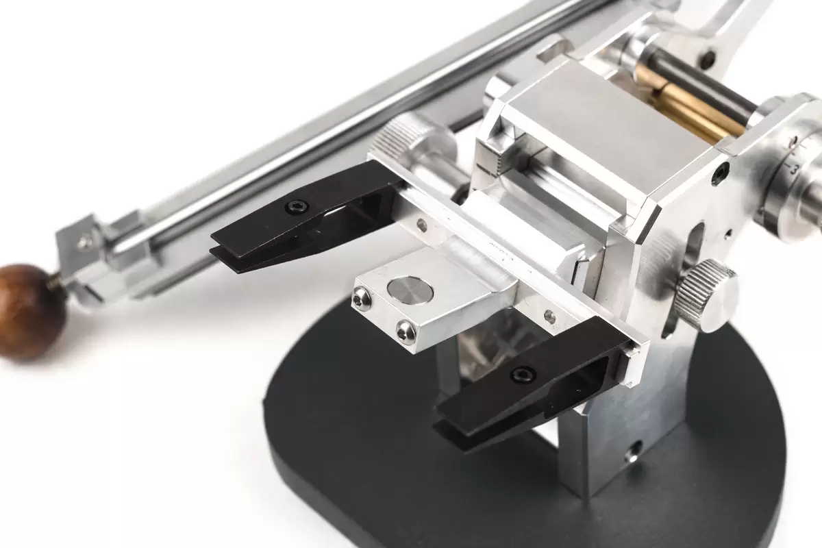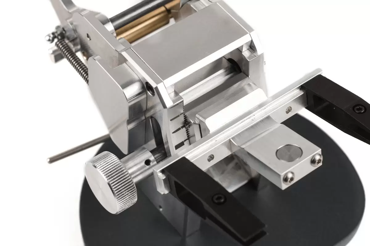 2. Place the abrasive in the abrasive holder and adjust the abrasive thickness compensator to the desired position.