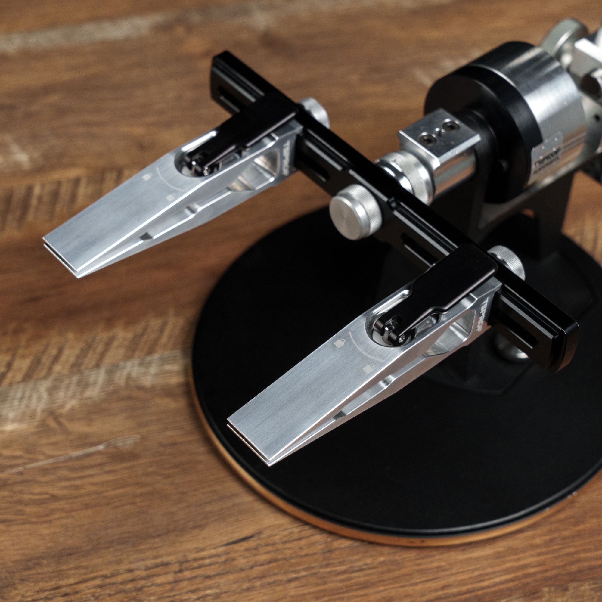 The unique clamp profile is calculated with mathematical precision and has ideal proportions, highlighting the stylish appearance that will perfectly complete your sharpening system. An anodized layer with dye gives the clamping foot a unique, vibrant touch, complementing the overall futuristic look of the clamps.